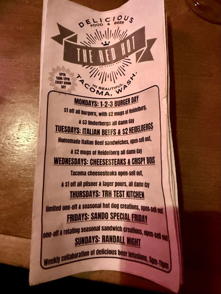 Located in Tacoma, WA, Red Hot is a haven for hot dog enthusiasts seeking a unique blend of flavors. Specializing in vegan hot dogs, the restaurant offers an inclusive menu that caters to various tastes without sacrificing taste. Diners can enjoy casual outdoor seating, perfect for savoring a gourmet hot dog in a friendly atmosphere.